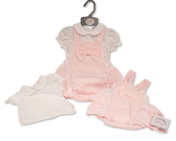 Waffle dungaree, shorts and blouse pink shoes available separately