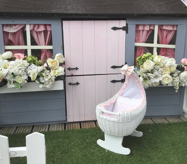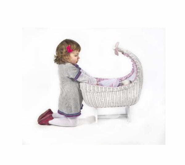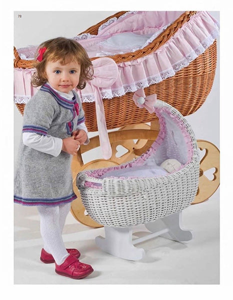 White wicker doll crib . Rocking base . Handmade in Spain .