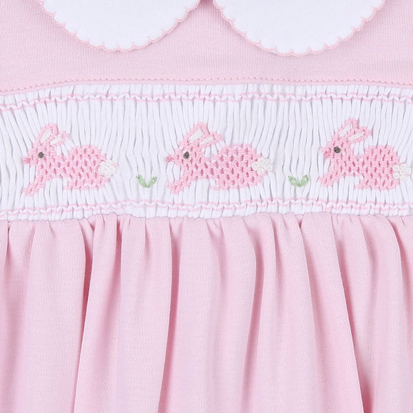 Pink smocked collared bunny footsie
